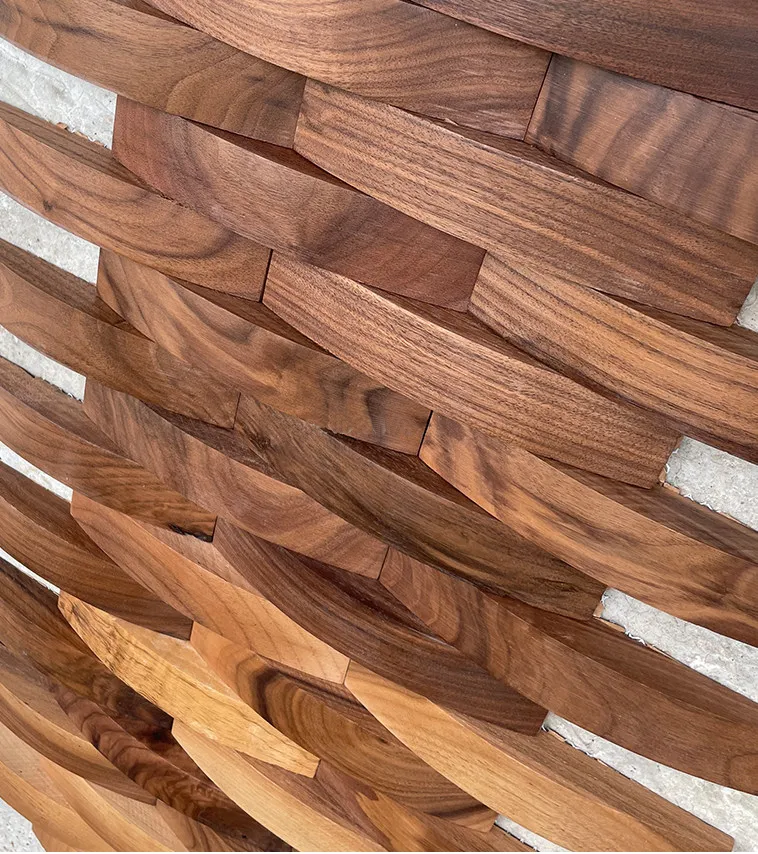Solid wood mosaic wall panels are a high-end decorative solution that combines natural texture, artistic design, and long-lasting durability. Made from 100% real wood, these panels create a warm, elegant, and luxurious atmosphere in residential and commercial spaces.
